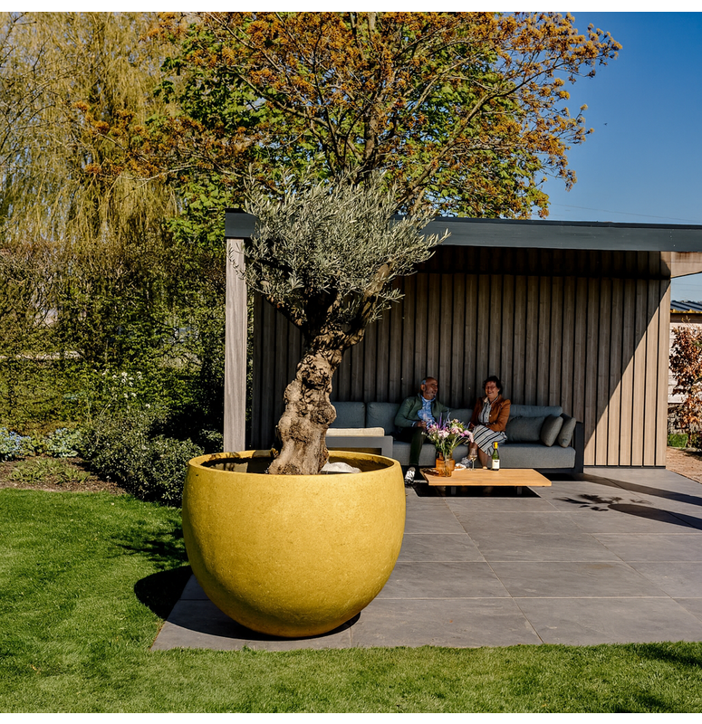 Voor buiten én binnen!Kalif Design Betonnen bloembak rond "Diana" XXL (120x91 cm) Yellow