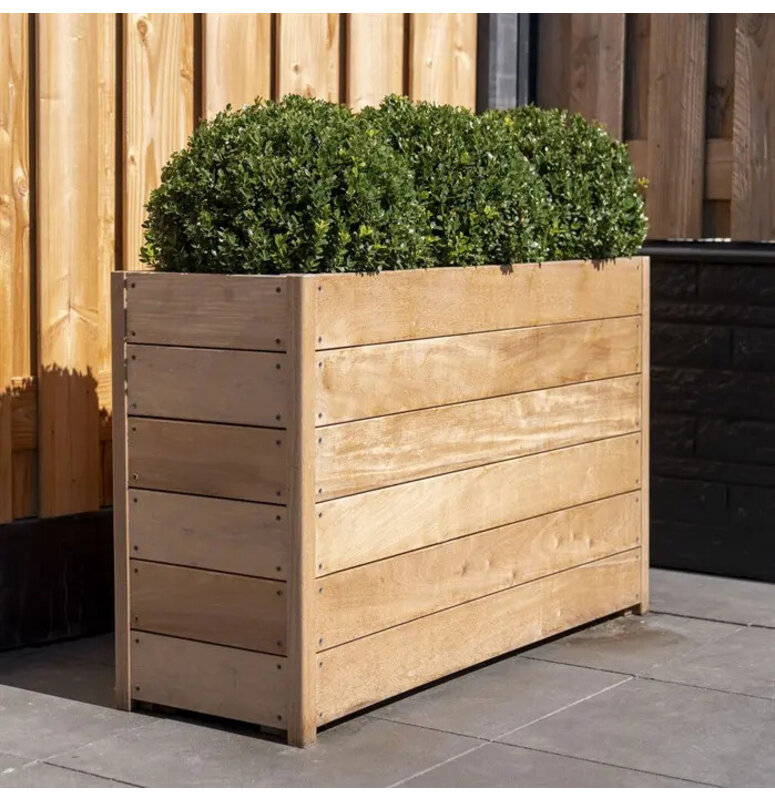 Onze houten plantenbakken geeft iedere tuin direct een warme en natuurlijke uitstraling. Of je nu beschikt over een strakke stadstuin, een royaal dakterras of een landelijke tuin; met onze houten plantenbakken op maat creëer je precies de sfeer en indeling die jij voor ogen hebt. Het model Carrez houten plantenbak is een vereenvoudigde versie van de Malaga serie.