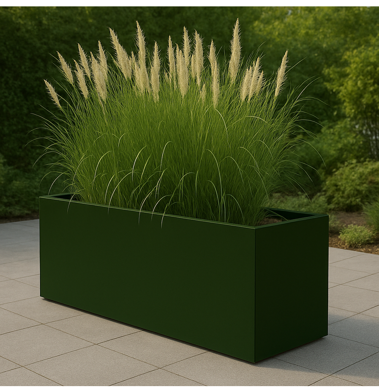RAL 6007 Zelf je ideale plantenbak uitrekenen!Rechthoekige plantenbak op maat van aluminium Flessengroen