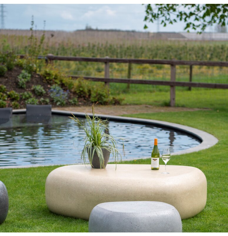 Na het drogingsproces worden de zitelementen geslepen, geschuurd en gepolijst. Op deze manier ontstaat er een mooie, gladde zitkei. Als laatste stap wordt er een coating toegevoegd om de zitkeien water- en vuilafstotend te maken.